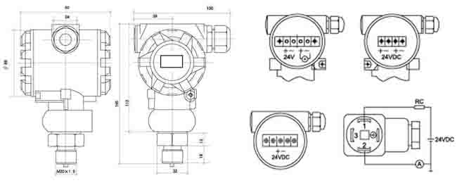 二、308系列壓力變送器外形尺寸圖及接線圖