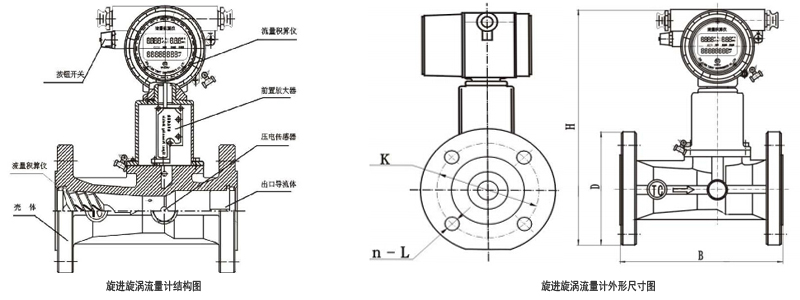 當沿著軸向的流體流量傳感器入品時,在漩渦發(fā)生體的作用下,被強制圍繞中心線旋轉(zhuǎn),產(chǎn)生漩渦流,漩渦流在文丘利管中旋進,到達收縮段突然節(jié)流后,使漩渦流加速,當通過擴散段時,漩渦中心沿一錐形螺旋線進動。此時,漩渦中心通過檢測點的進動頻率與流體的流速成正比。由壓電傳感器檢測到的漩渦流進動頻率信號經(jīng)放大、濾波、整形后轉(zhuǎn)換成流量值進行就地顯示或信號選擇。