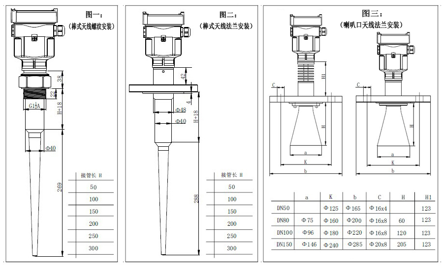 四、雷達液位計結(jié)構(gòu)尺寸圖: