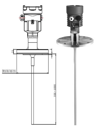 導(dǎo)波雷達(dá)物位計(jì)發(fā)出的高頻微波脈沖沿著探測(cè)組件(鋼纜或鋼棒)傳播,遇到被測(cè)介質(zhì),由于介電常數(shù)突變,引起反射,一部分脈沖能量被反射回來。發(fā)射脈沖與反射脈沖的時(shí)間間隔與被測(cè)介質(zhì)的距離成正比。從而計(jì)算出探測(cè)組件頂部被測(cè)介質(zhì)表面的距離,被測(cè)容器總高度是已知數(shù),進(jìn)一步可得出介質(zhì)的物位高度。