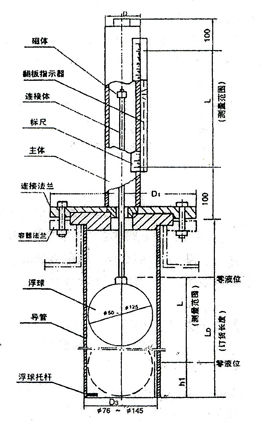 頂裝式磁浮子液位計根據(jù)浮力原理和磁性耦合作用原理工作的。當被測容器中的液位升降時,液位計主導管中的浮子也隨之升降,浮子內的磁鋼通過磁耦合傳遞到現(xiàn)場指示器,驅動紅白翻柱轉180°,當液位上升時,翻柱由白色轉為紅色,當液位下降時翻柱由紅色轉為白色,指示器的紅、白界位處為容器內介質液位的實際高度,從而實現(xiàn)液位的指示。