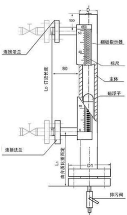 (對中心距超過5000mm的或運輸條件不允許超過長度的液位計可采用分段制造)