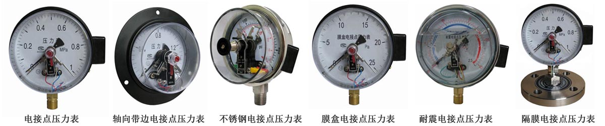 電接點壓力表具有測量控制功能,可任意設(shè)定上、下控制壓力值,動作穩(wěn)定可靠,在石油、化工、電站、冶金等工業(yè)企業(yè)及機(jī)電設(shè)備上廣泛配套使用。