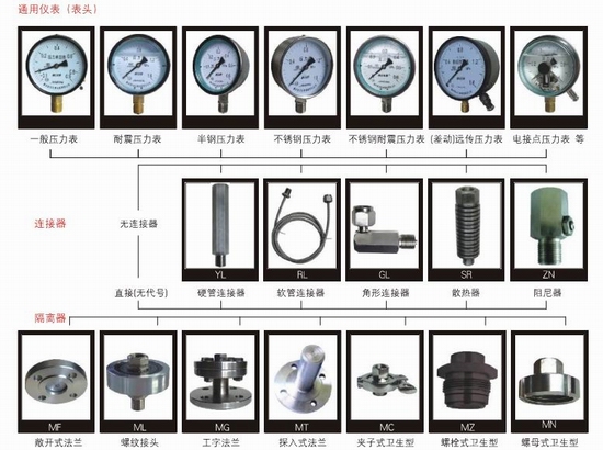三、隔膜壓力表型號及名稱(根據(jù)上表選擇連接方式代碼):